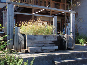 庭に出るとビオトープが。
