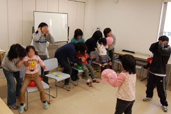 子供たちの集いは初めてで、ケーキとジュースとお菓子でお祝いし、ビンゴゲーム、風船割りリレー、お絵かきクイズ等で皆さん楽しんでおられました。